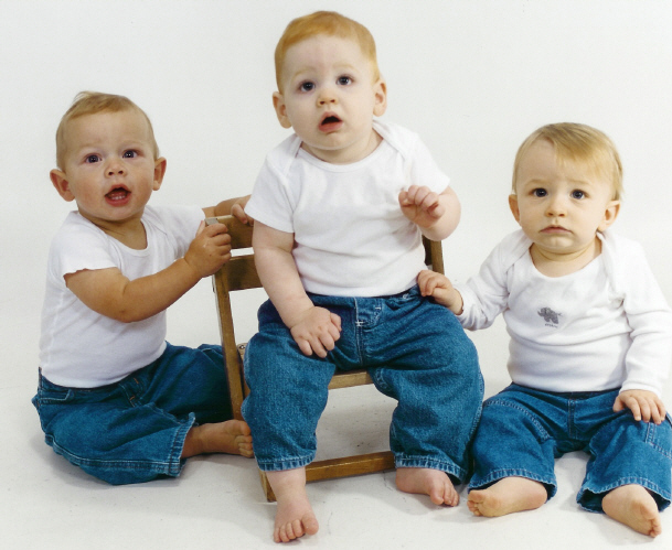 | Here are a few new pictures of Dominick and a few of him and his buddies. Makenzi is the little girl, she and Dominick share the same birthday and they both weighed 6lbs 14oz when they were born, pretty weird, huh? Tyler is the little guy on the left, he was born two days after Makenzi and Dominick. Zachary is the other little man in the picture of the boys he is a couple weeks older than the others and a rough and tumble little boy, no lock of hair or stray ear is safe! Tyler is as demure as they come and Makenzi is a little spitfire, she has been walking since 10 months and she just moves. Dominick continues to have a will of steel (gee, wonder where he got that from...?) and is more fun each passing day. Hope you all enjoy these pics. Sorry for the long winded explanation of all the kids, just thought you should know who Dominick is hanging out with...love, love, love you | |