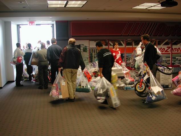 AutoZoners gave Christmas Presents to some 400 children and their families by way of the Salvation Army