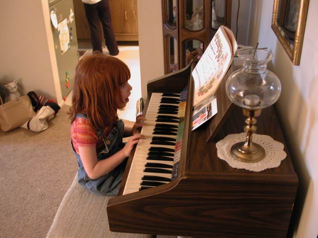 Playing great-granmother Lottie's organ