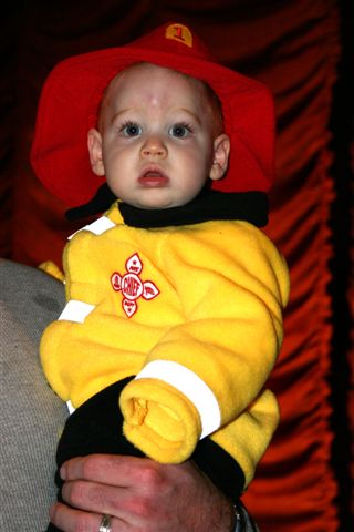 | Here are a few pictures of the little Fireman. We attended a community Pumpkin fest and Magic show, Dominick slept through most of it, but we had a great time! Happy Halloween everybody! Love you... | |