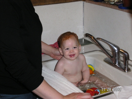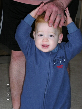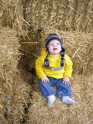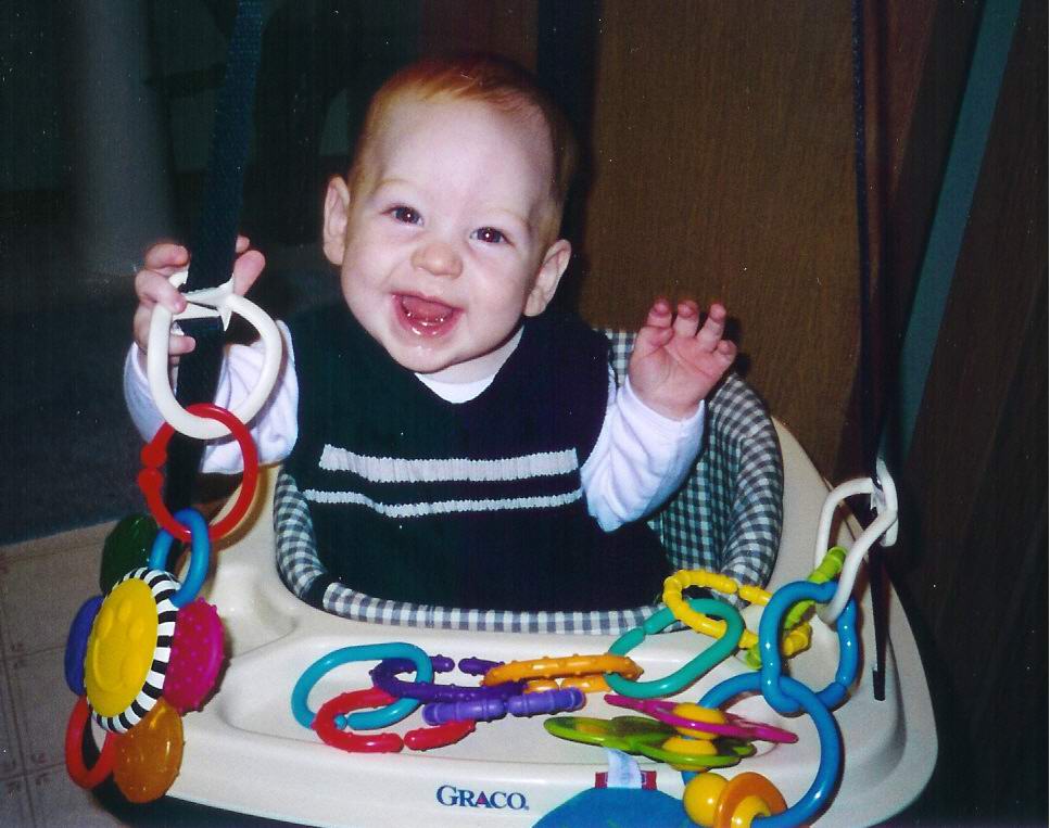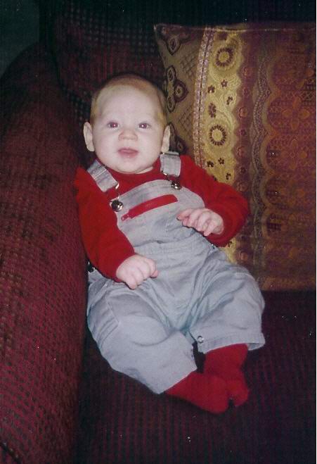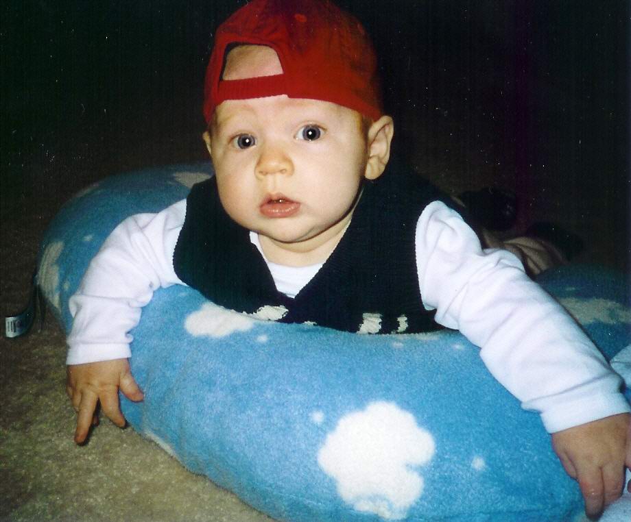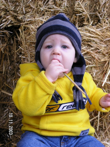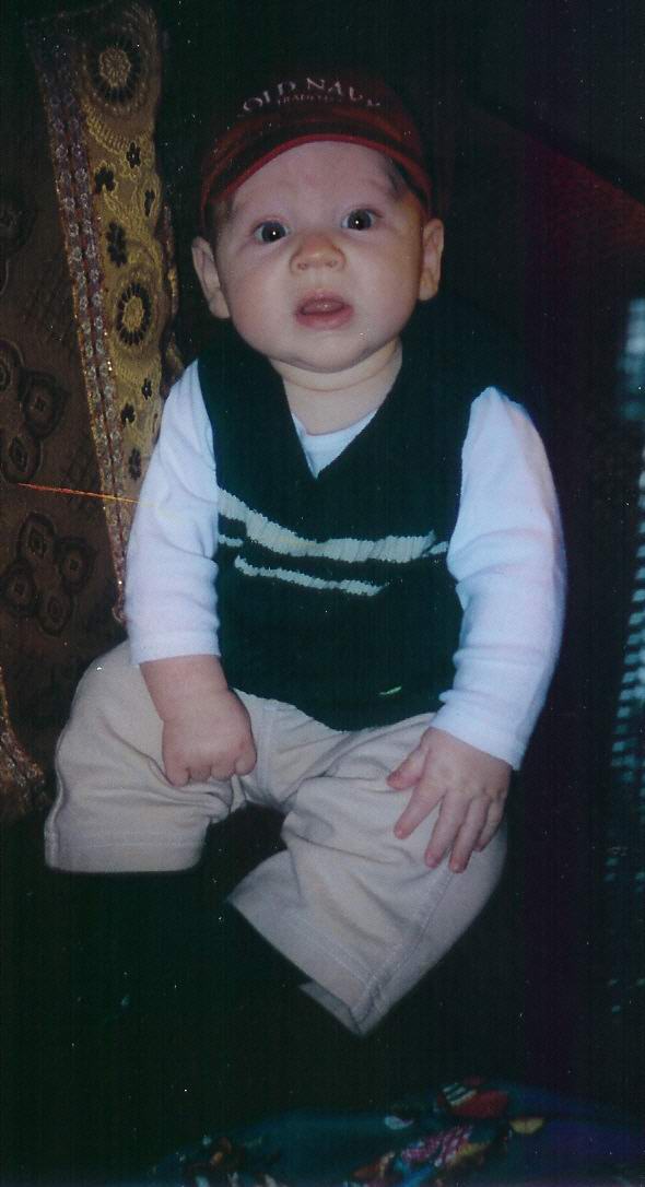 | Here are a few new pictures of Dominick and a few of him and his buddies. Makenzi is the little girl, she and Dominick share the same birthday and they both weighed 6lbs 14oz when they were born, pretty weird, huh? Tyler is the little guy on the left, he was born two days after Makenzi and Dominick. Zachary is the other little man in the picture of the boys he is a couple weeks older than the others and a rough and tumble little boy, no lock of hair or stray ear is safe! Tyler is as demure as they come and Makenzi is a little spitfire, she has been walking since 10 months and she just moves. Dominick continues to have a will of steel (gee, wonder where he got that from...?) and is more fun each passing day. Hope you all enjoy these pics. Sorry for the long winded explanation of all the kids, just thought you should know who Dominick is hanging out with...love, love, love you | |